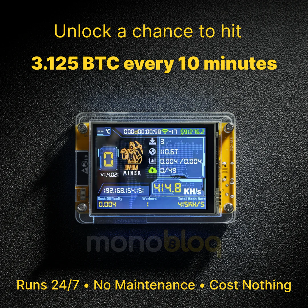 Unlike lottery tickets that waste your money and fuel addiction with bigger gambles each time, Monobloq is a one-time purchase that mines 24/7 with infinite attempts to win life-changing rewards with no recurrent cost.